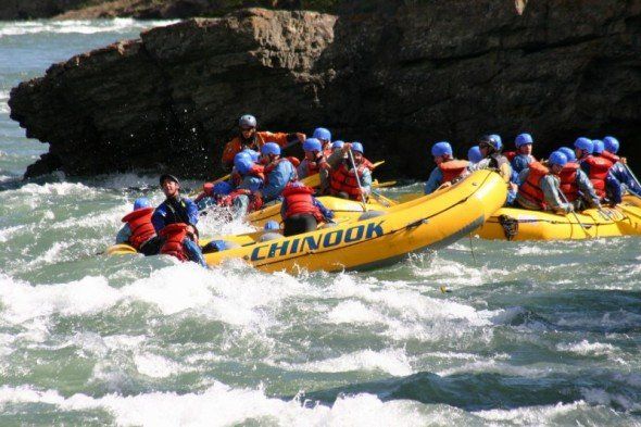 Lisa R., Connie and Peggy were washed away from the raft and were picked up by the other rafts. Liam was able to get back in the raft by himself and started pulling people back in.