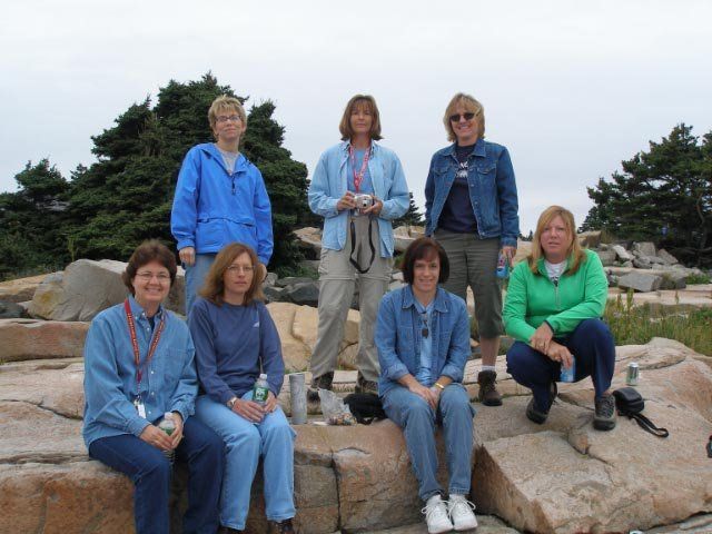After the hike we met the Friends of Acadia and group of 80 Somethings that hike in Acadia every Tuesday. We talked to them for a while and they became our mentors. We took a picture with them . The BVE are kneeled in front - except for Sue who stood up with the other group. Is it possible that she was trying to leave us and join them?