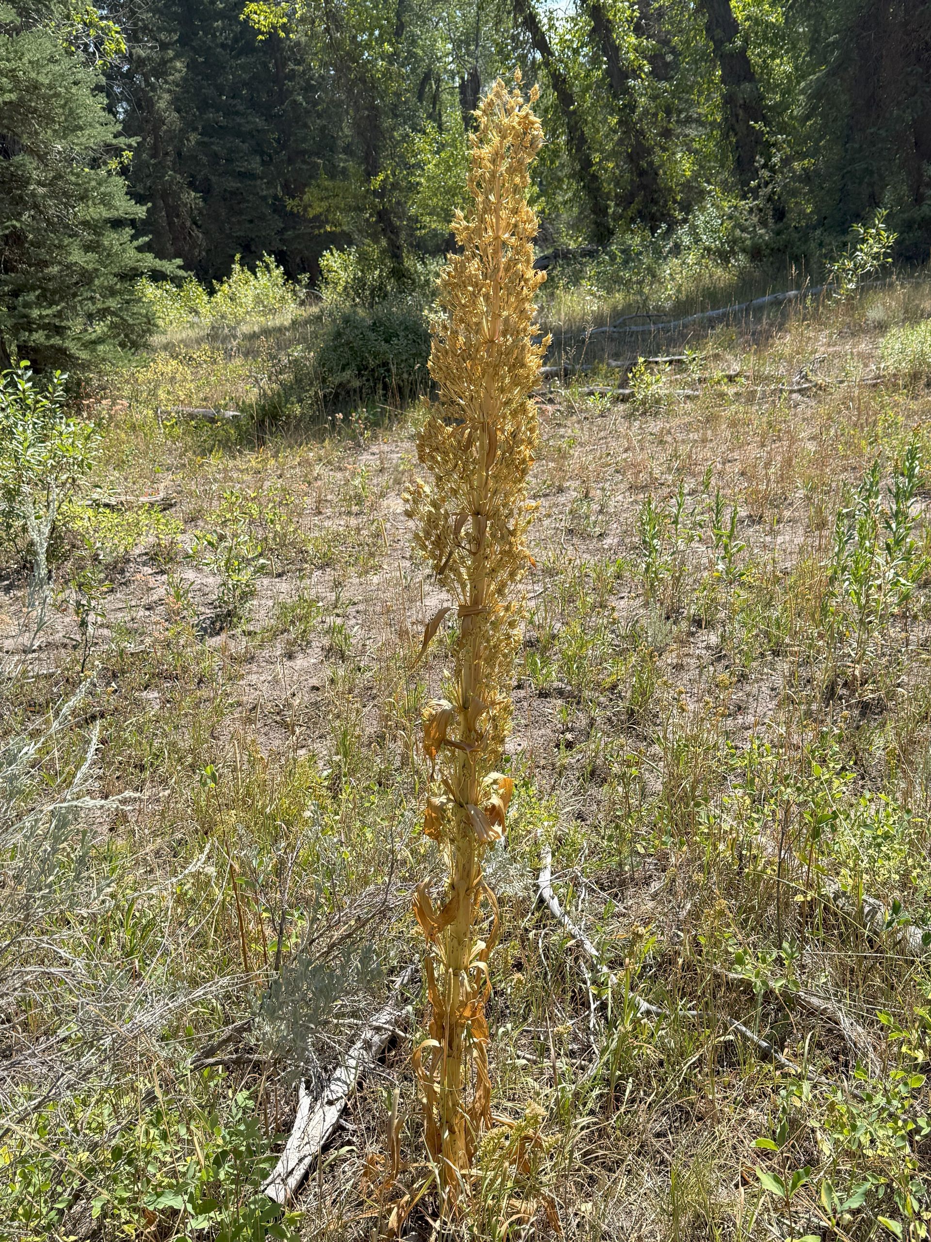 Thanks to technology we were able to identify the plant life we found on the trail. The plant on the right is Creeping Oregon Grape. The small blue berries are tart and can be used to make jams and jelly. They are also have medicinal value. The plant on the left is Frasera Speciosa commonly known as Elkweed, Monument Plan and Green Gentian. We caught it at the end of it's lifecycle, If we had been there earlier we would have seen Purple Flowers.