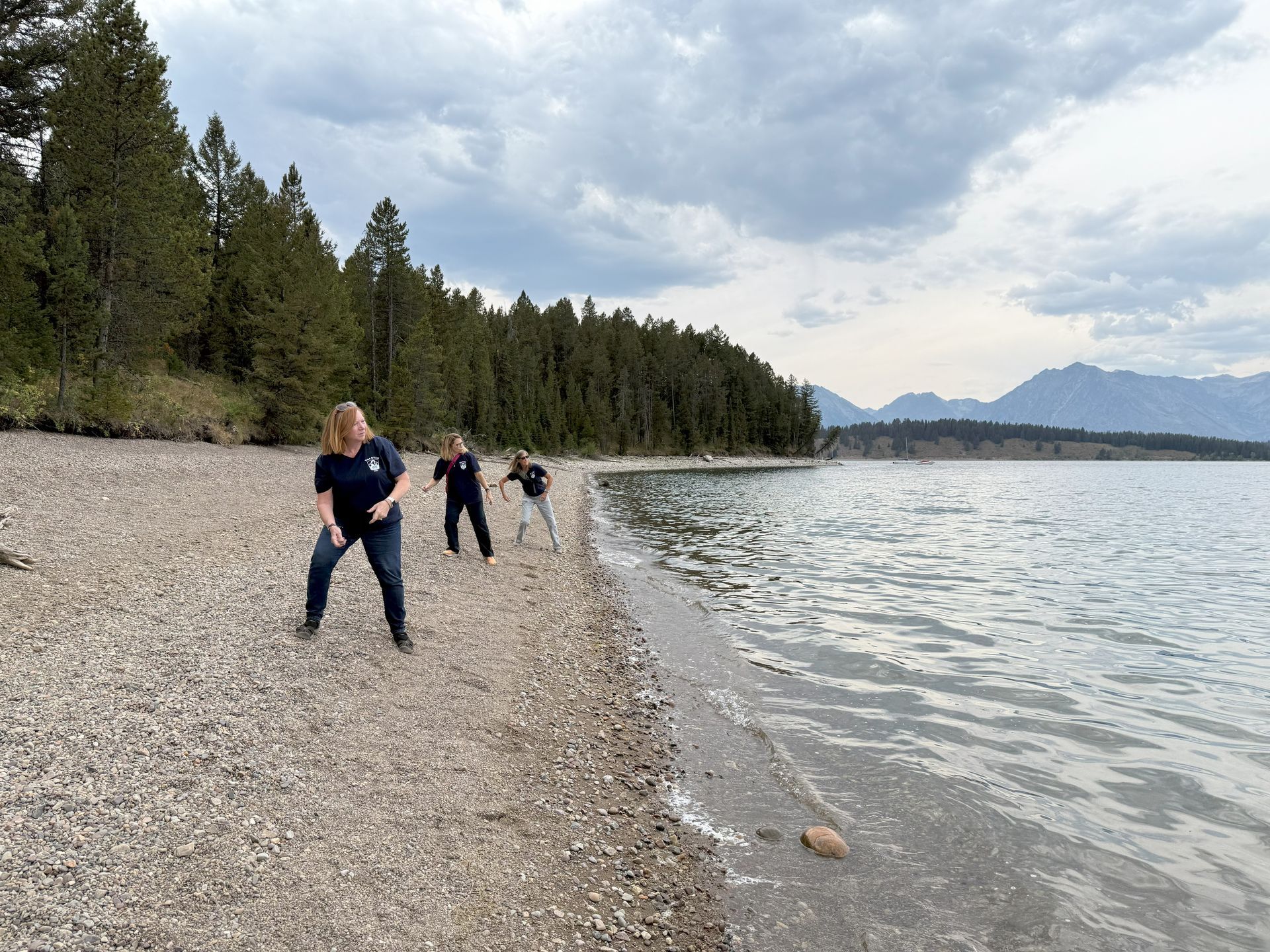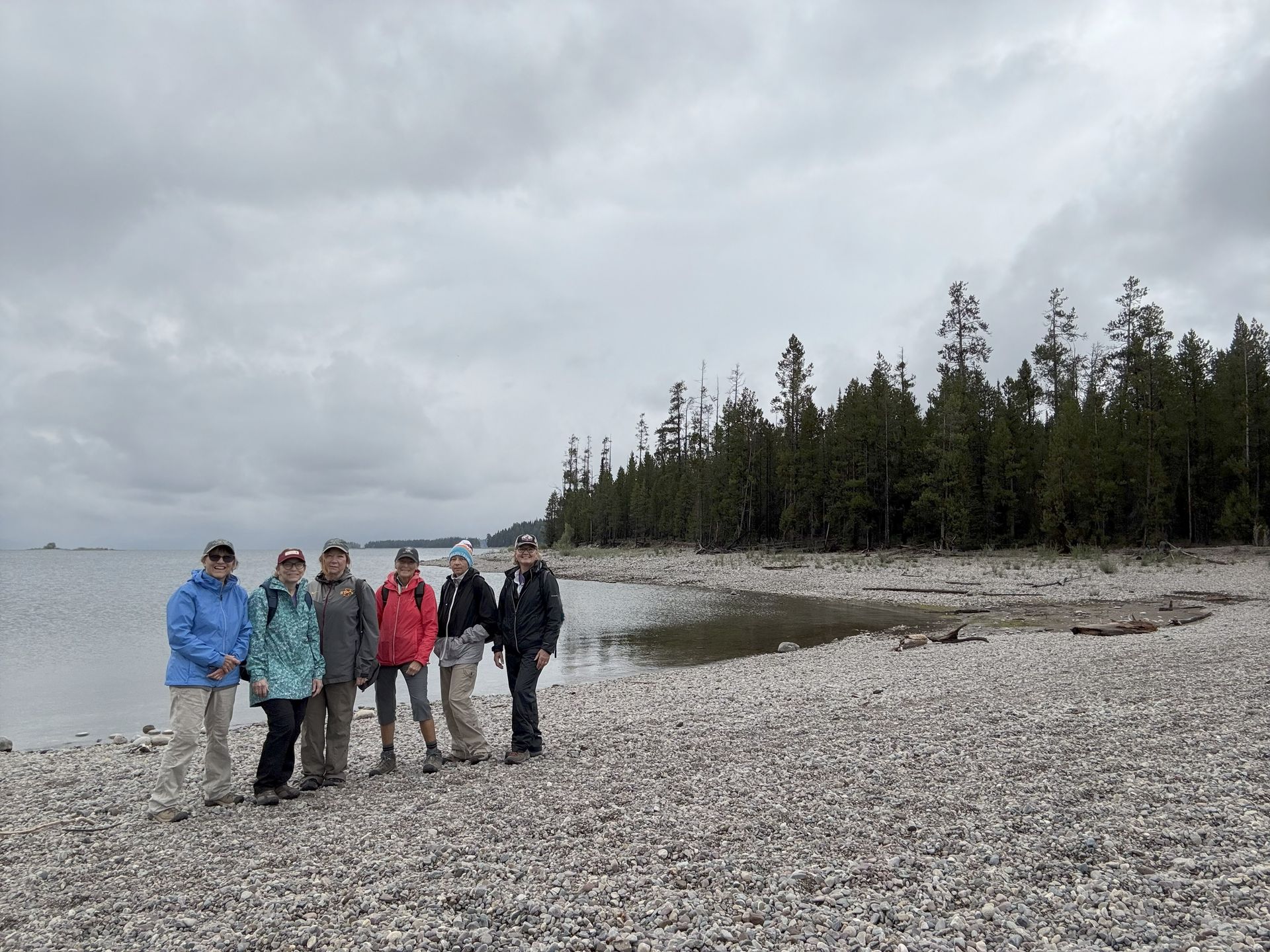 Drove up to Colter Bay and checked out the visitor center and rewatched the video that we had seen earlier in the week in the visitor center. It was nice to see the places we had been. Then we took a 2 1/2 mile hike around the lake shore. It was good that we brought rain coats as it rained on us off and on during the hike.