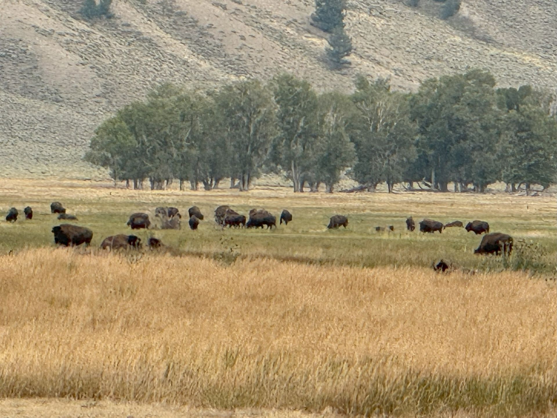 We spotted some Buffalo grazing as we continued on the route. We drove past this area several times on this trip and this was the only time we saw Buffalo.
