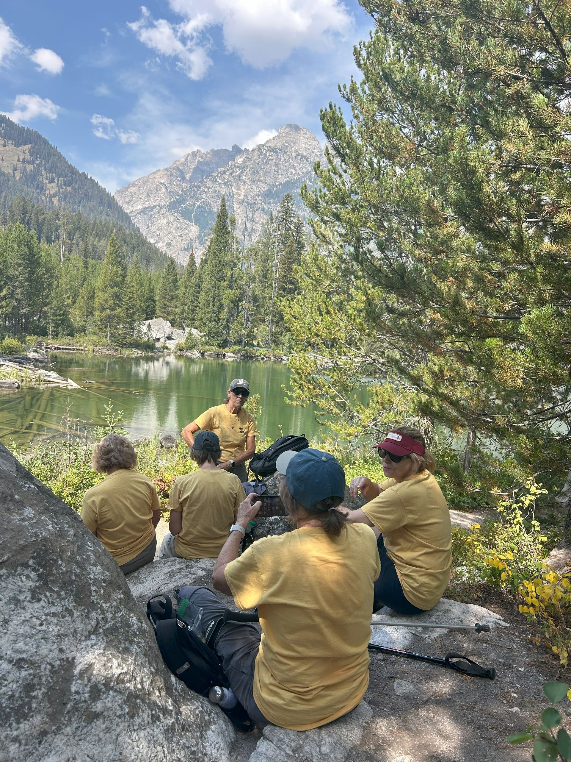 It’s a 3 mile round-trip hike with 300 foot elevation climb to Lake Taggart. The lake is beautiful and worth the trip. We took a picture by the rock and the Scholar Group we met the day before, was there wanting to have lunch and they took our picture for us.