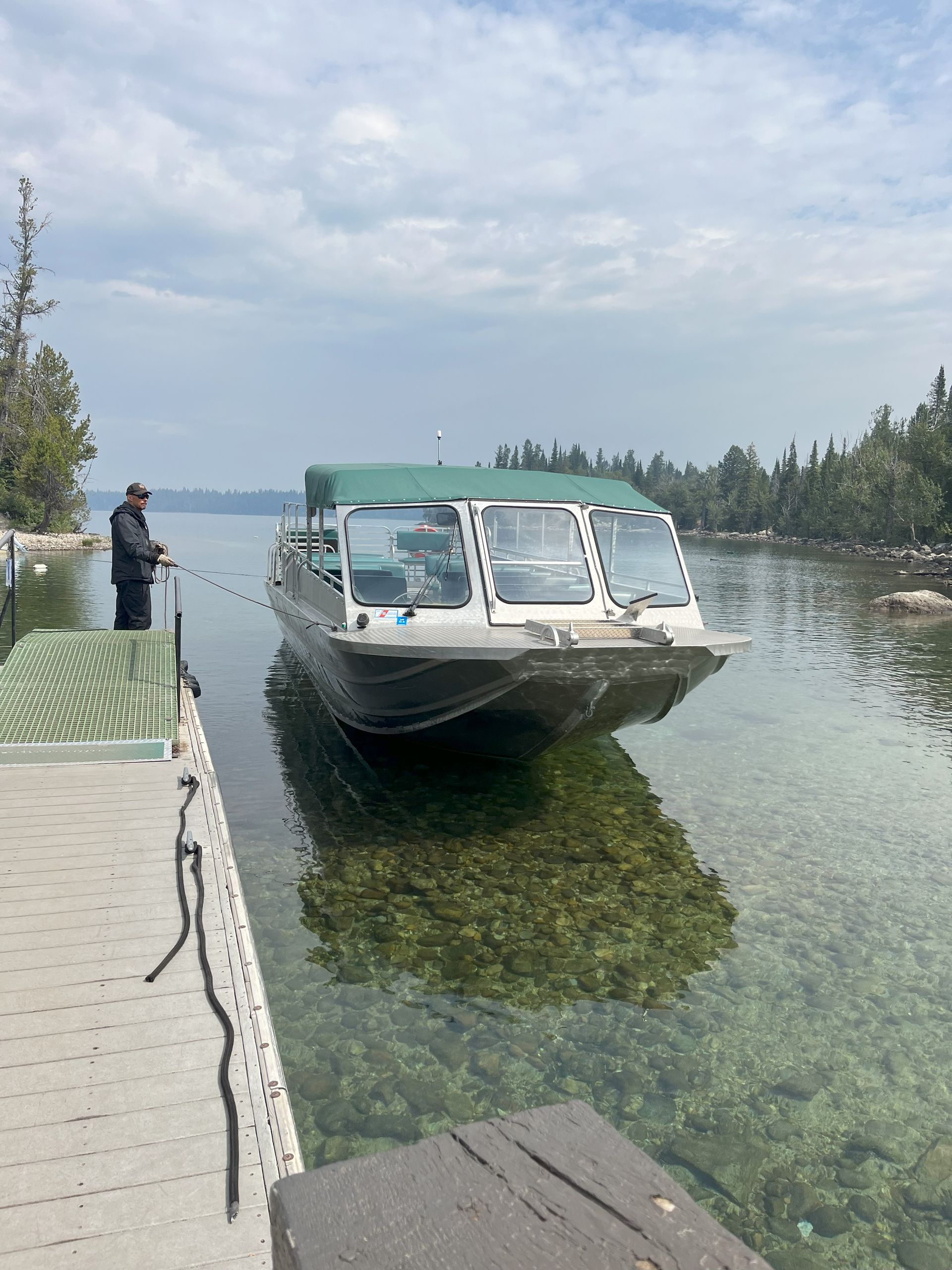 Had breakfast, made out lunches and cleaned up the kitchen before heading out at 10 o’clock. Our hike today is at Jenny Lake. We’re going to take the shuttle across the lake and go up to Hidden Falls.