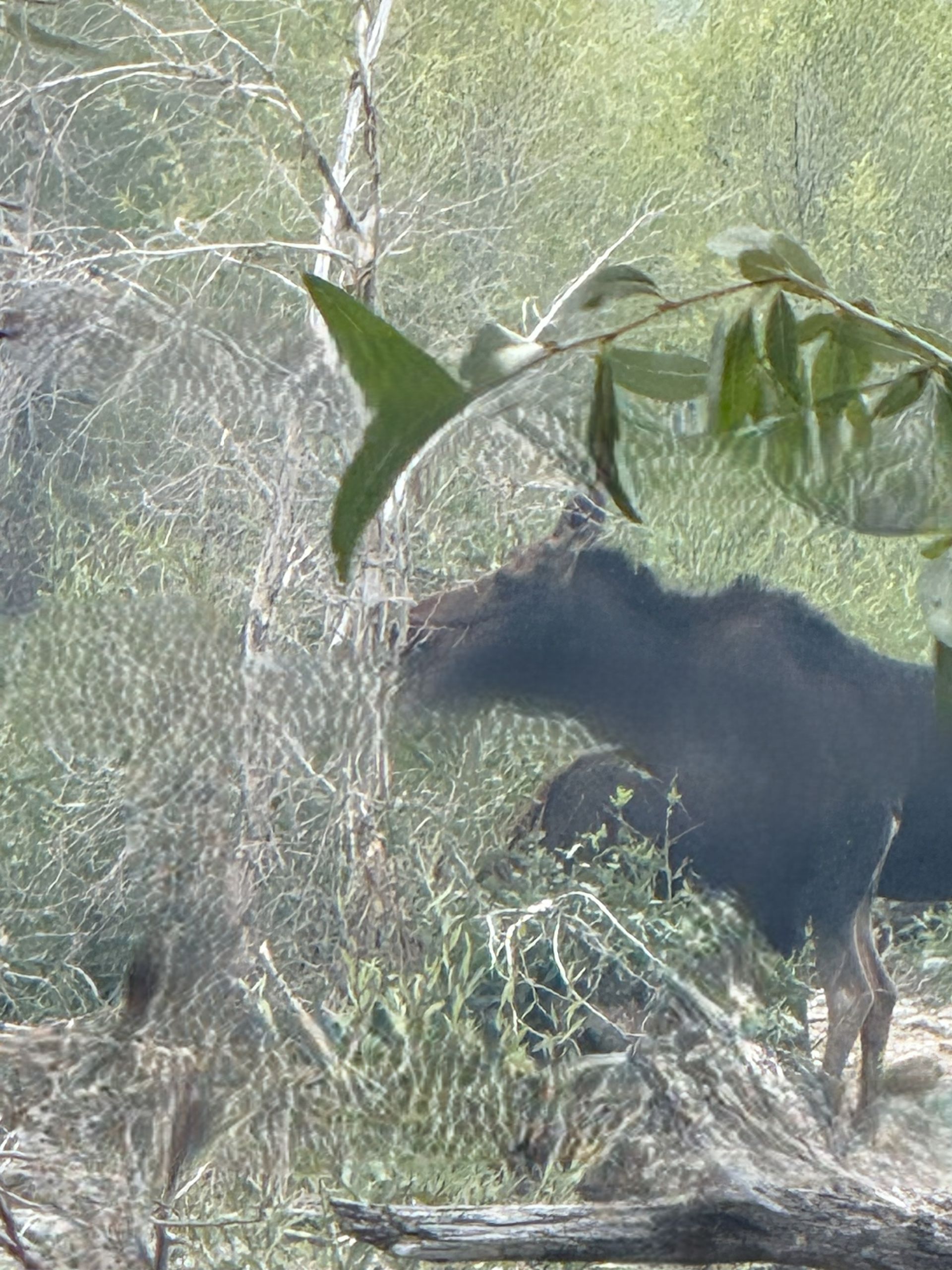 On the highway we had a wildlife sighting. Our first indication was all the cars that were pulled off. Brenda did an excellent job parallel parking along the road and we ran out and got a picture of a female moose and an adolescent moose. They were in the elk refuge.