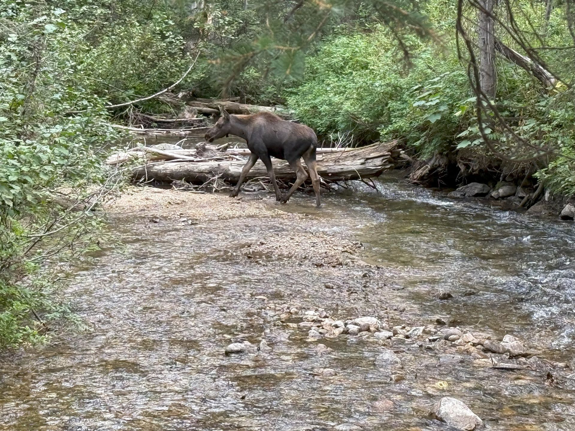 On the way back down, we found another mother and a yearling moose. This was near Hidden Falls so we all got to watch them. They were near the trail and didn't seem bothered by all the people watching them.