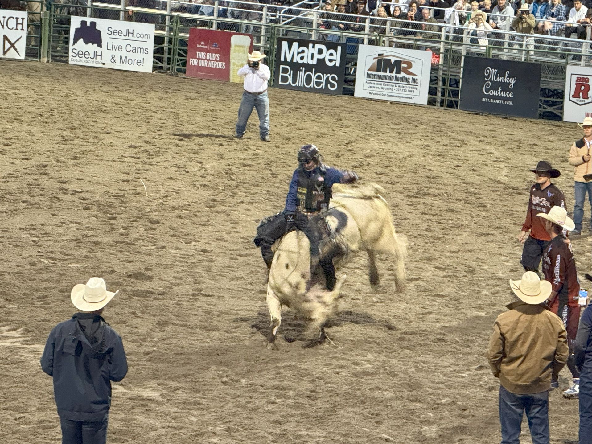 The rodeo was very entertaining we saw bull riders, bronc riders, team roping, barrel racers, and the mini bull riders. About a half an hour before it was over. It started to rain and the stands started to thin out, but not the BVE. We pulled out the trash bags and stayed until the bitter end. The rodeo was over about 9:30 and we walked back to the condo.