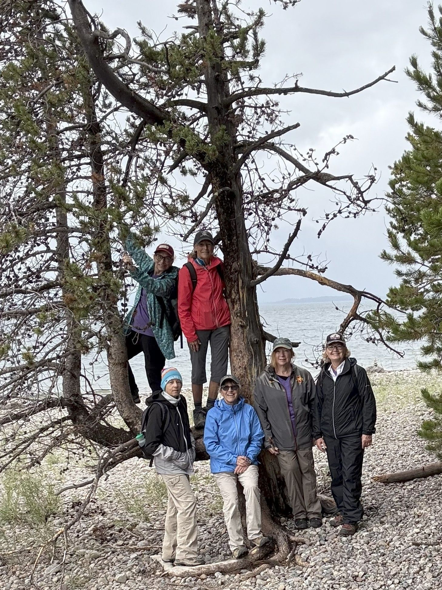 After we watched the Moose, it was time to hike the 2 1/2 miles back to the visitor center. We didn't take the boat this time. It was a scenic trail around the lake and we stopped to a group shot.