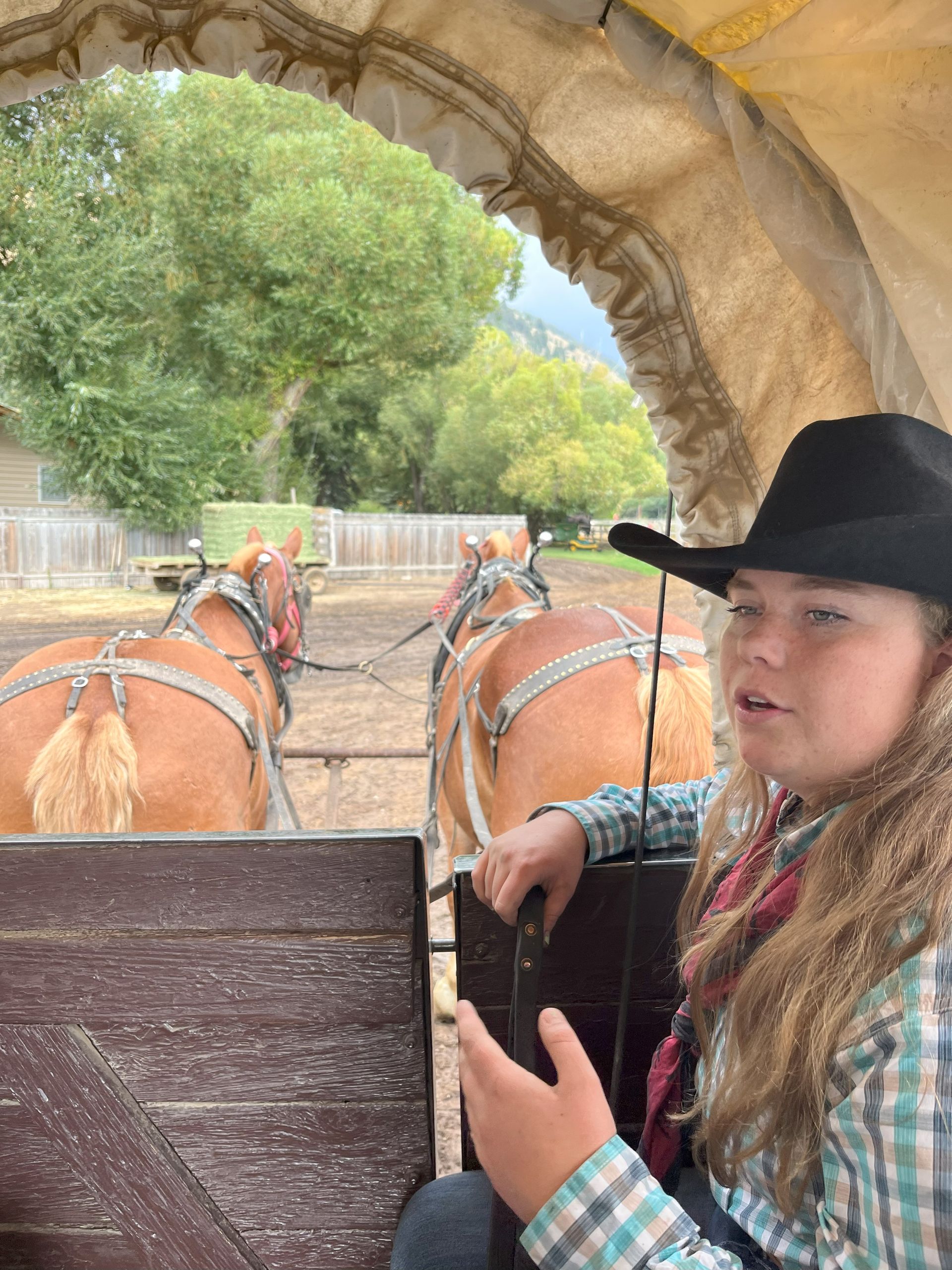 We went to Wagon F where we met our driver Rylie. The horses are Donna and Dudley.