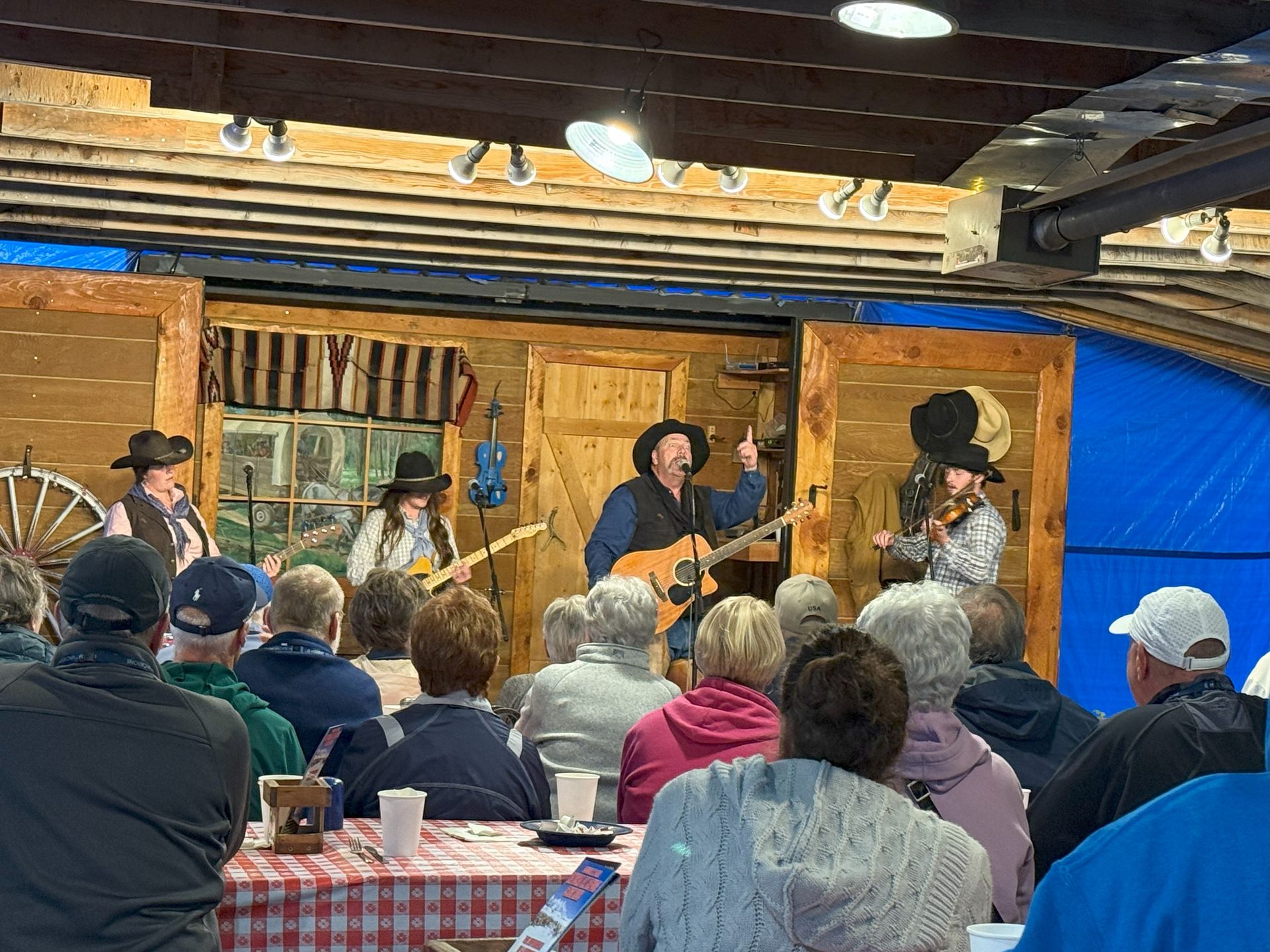 At 5 o’clock it was time to head to the Bar-T-5 Covered Wagon Cookout. We got signed in and sat down. At 5:30 there was a small program and at 5:45 we loaded into our wagon.