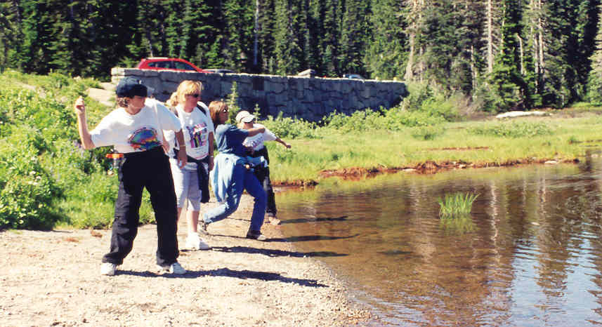 Rock skipping has always been a favorite activity of the BVE. Here we are skipping rocks in Reflection Lake in Mount Rainier National Park.