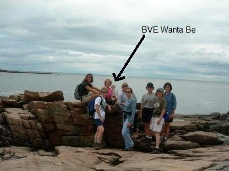 After the hike we met the Friends of Acadia and group of 80 Somethings that hike in Acadia every Tuesday. We talked to them for a while and they became our mentors. We took a picture with them . The BVE are kneeled in front - except for Sue who stood up with the other group. Is it possible that she was trying to leave us and join them?