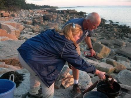 We had a great lobster dinner along the shore and toasted the evening with Moxie. Most of us put our Lobster in the pot of boiling water. We ate lobsta on the rocks and threw the shells where the tide would wash them out to sea. After dinner we watched the sunset and had a great view of the stars while we listened to the tide coming in. This evening was the highlight of the trip.